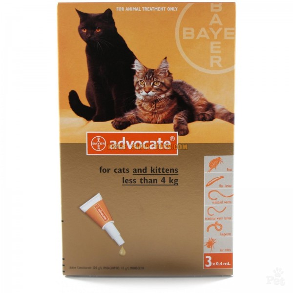 Advokát eliminuje blechy a bleší larvy, dirofilárií, měchovec, škrkavka a ušní roztoči.