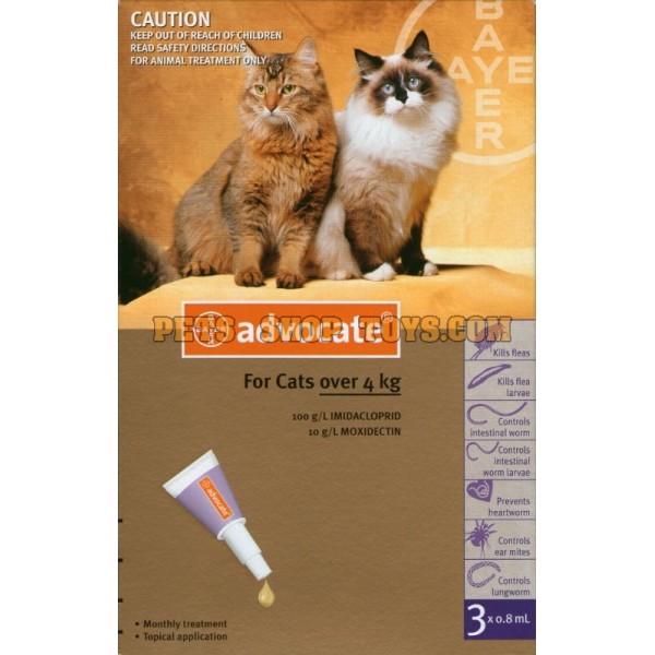 WORM CONTROL - obhájce zachází a řídí hlavní gastrointestinální hlístic koček, ale nezahrnuje tasemnic. Za účelem kontroly těchto červů používají DRONTAL nebo DRONCIT podle potřeby. Kočky mohou být reinfested s červy, ale pravidelné využívání advokáta je odstraní. Pokud přetrvávají problémy s červ konzultovat váš veterinární lékař.